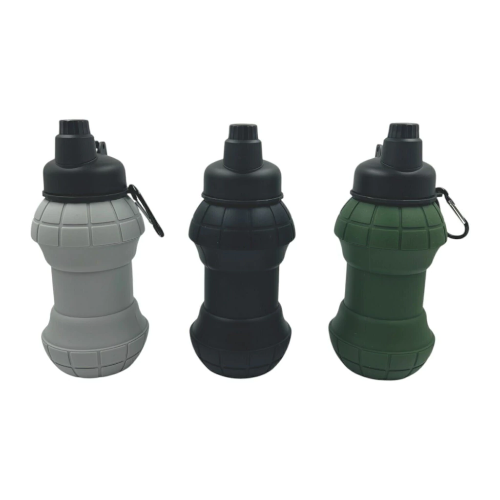 La botella de agua plegable de silicona combina practicidad, resistencia y un diseño único inspirado en forma de granada. Fabricada con silicona, es ligera, flexible y segura para el uso diario. Ideal para deportes, camping, gimnasio o para llevar en tu bolso o mochila gracias a su mosquetón metálico.