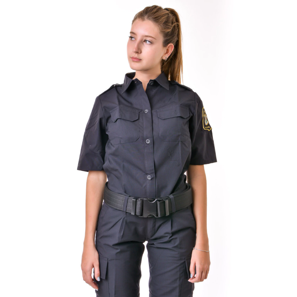 Se trata de una camisa entallada antidesgarro de manga corta confeccionada en un sobrio color azul oscuro. Está diseñada con porta charreteras en ambos hombros, lo que permite la sujeción de las insignias de jerarquía.
