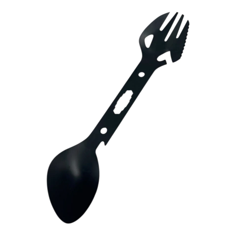 Práctico, resistente y liviano. Este cubierto multifunción 6 en 1 combina cuchara, tenedor y herramientas esenciales en un solo accesorio compacto. Ideal para camping, excursiones, viajes o kits de supervivencia, fabricado en acero inoxidable de alta calidad que garantiza durabilidad y fácil limpieza.