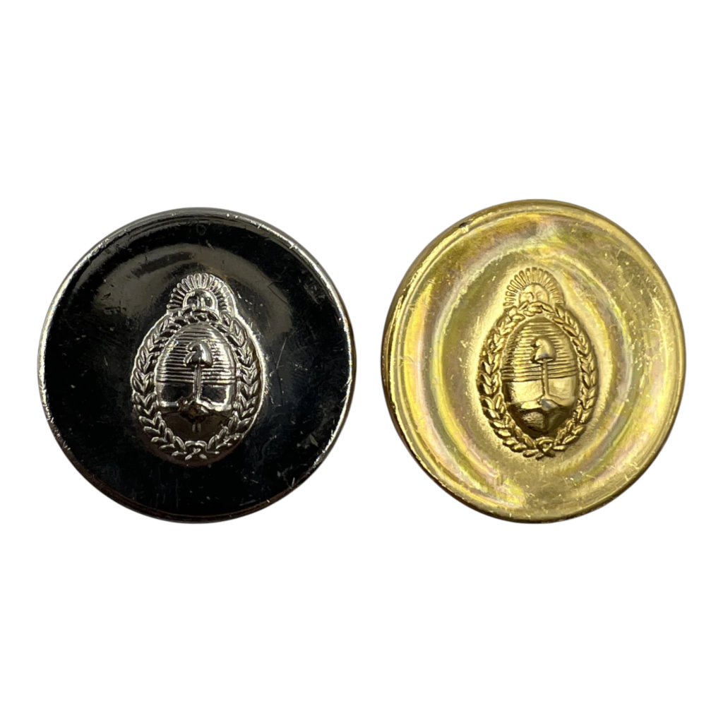 Esta hebilla metálica redonda presenta en el centro el Escudo Nacional de la República Argentina, grabado en relieve. Es un accesorio clásico y representativo, ideal para personal de fuerzas de seguridad o formales que buscan un detalle distintivo y con presencia. Diseñada para ser colocada en cinturones de cuero, ofrece firmeza, durabilidad y un cierre seguro gracias a sus tres ganchos traseros de sujeción.