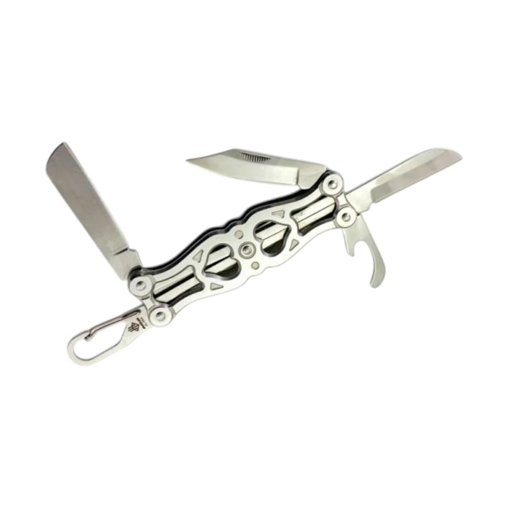 Diseñada para quienes buscan una herramienta práctica, resistente y funcional, la Navaja Dos Corazones es una opción táctica de excelente calidad. Fabricada completamente en acero inoxidable, ofrece gran durabilidad y un diseño moderno con estructura visible tipo esqueleto. Incluye cinco funciones esenciales para el día a día o situaciones de emergencia: tres navajas plegables súper afiladas de diferentes formas, un gancho mosquetón para colgarla fácilmente del cinturón o mochila, y una herramienta combinada de abrelatas y destapador. Compacta, liviana y confiable, es ideal tanto para personal táctico como para actividades al aire libre, camping o uso cotidiano.