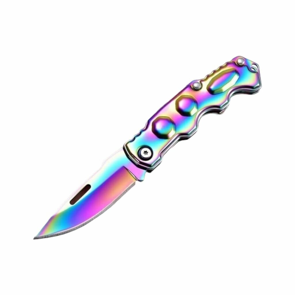 Dale un toque único a tu equipo con esta navaja táctica plegable de acabado irisado tipo “rainbow”, perfecta para quienes buscan funcionalidad y estilo. Fabricada en acero inoxidable de alta resistencia, combina filo preciso con un diseño llamativo que no pasa desapercibido. Ideal para uso diario, actividades outdoor y colección.