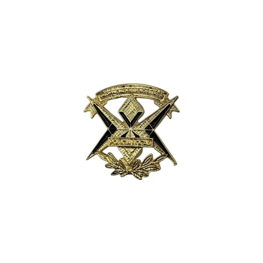 Distintivo metálico institucional para boina de la Policía Local en su versión dorado brillante para Subcomisario y Comisario