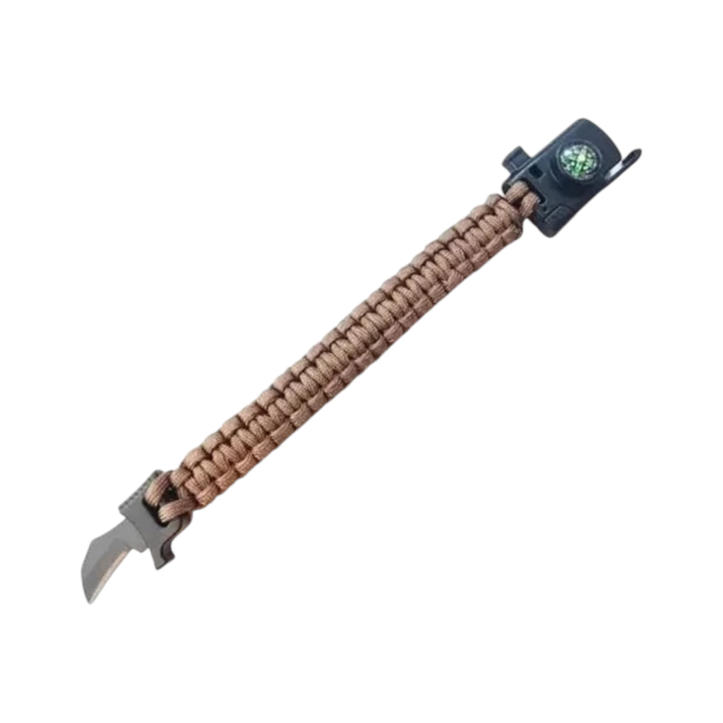 La Pulsera Paracord Navaja es el complemento perfecto para tu equipo de supervivencia, ofreciéndote herramientas esenciales y una solución compacta para tus aventuras.
