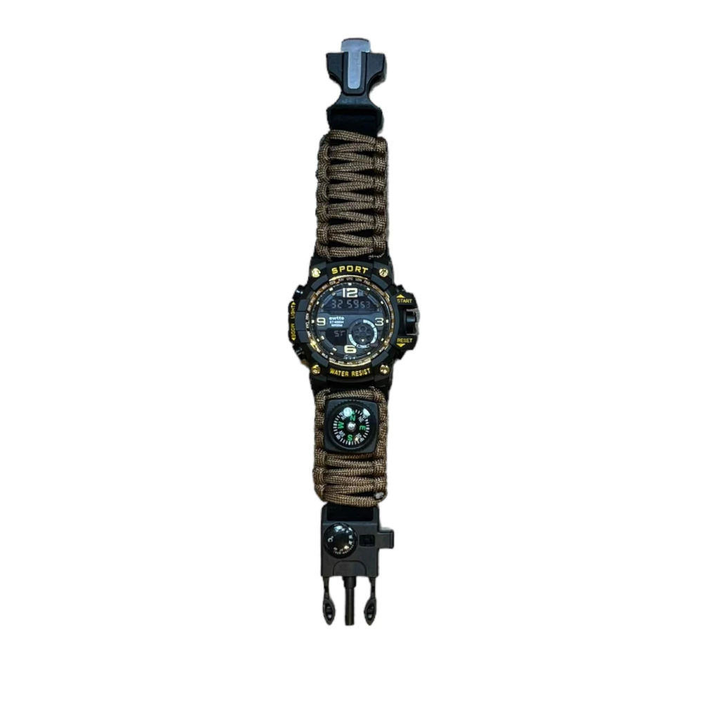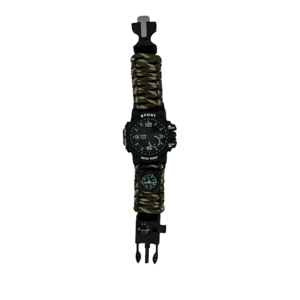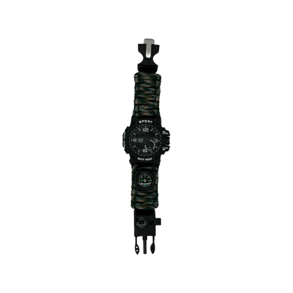 ¡Equípate para cualquier desafío con este reloj táctico todo en uno! Mucho más que un simple reloj, está diseñado para ser tu herramienta esencial en actividades al aire libre y situaciones de supervivencia.