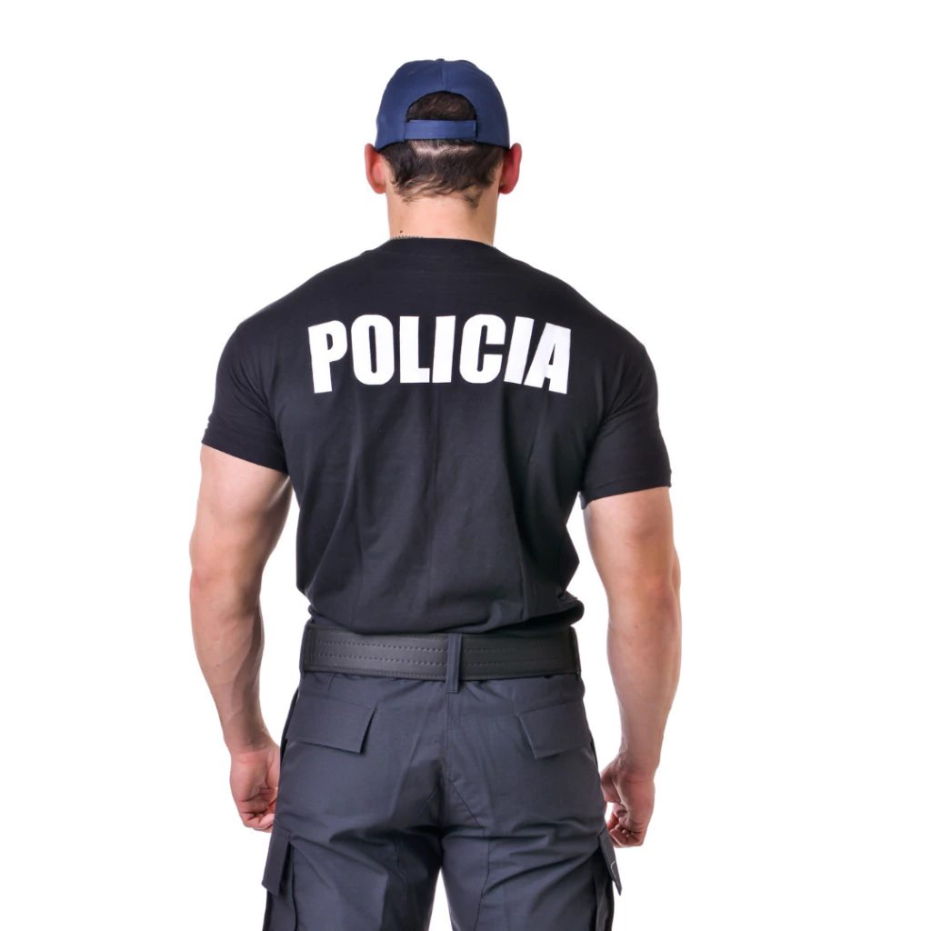 Diseño profesional: estampado “POLICÍA” grande y visible en pecho y espalda, identidad clara y elegante.