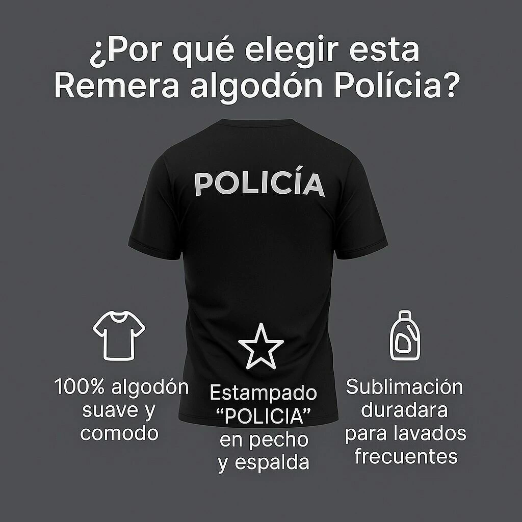 La Remera está diseñada para acompañarte en cada jornada con estilo, comodidad y distinción. Ideal tanto como prenda de uso diario como para trabajo policial, entrenamiento o actividades tácticas.